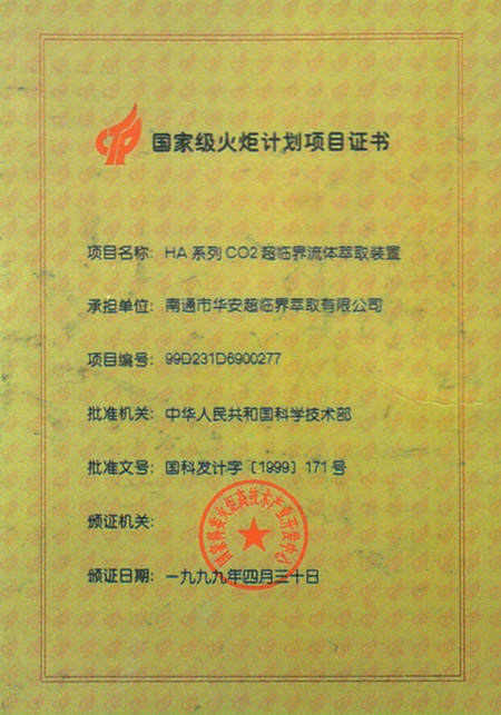 火炬计划项目证书