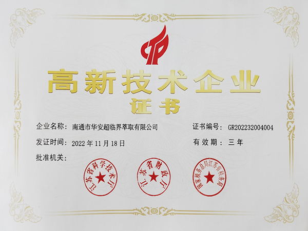 高新技术企业证书